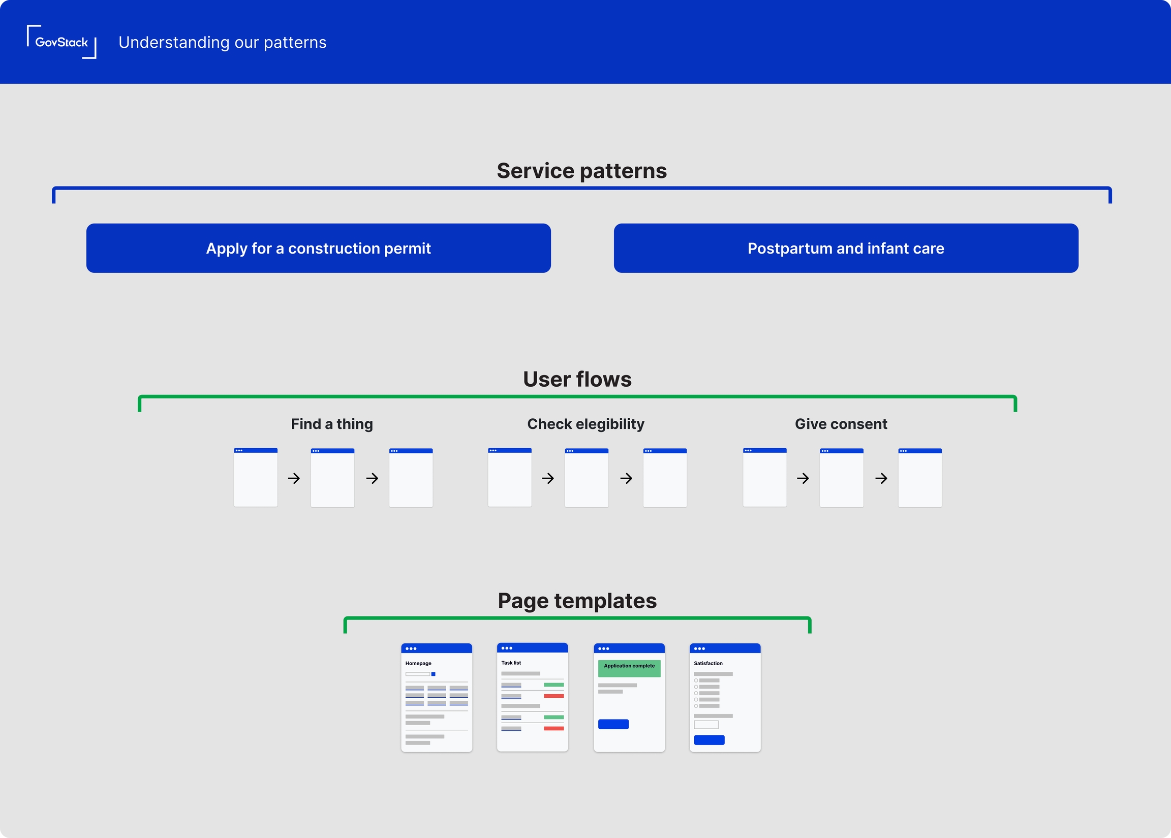 Choose user flows: Identify the patterns (task-focused page types) needed for each part of your user journey.