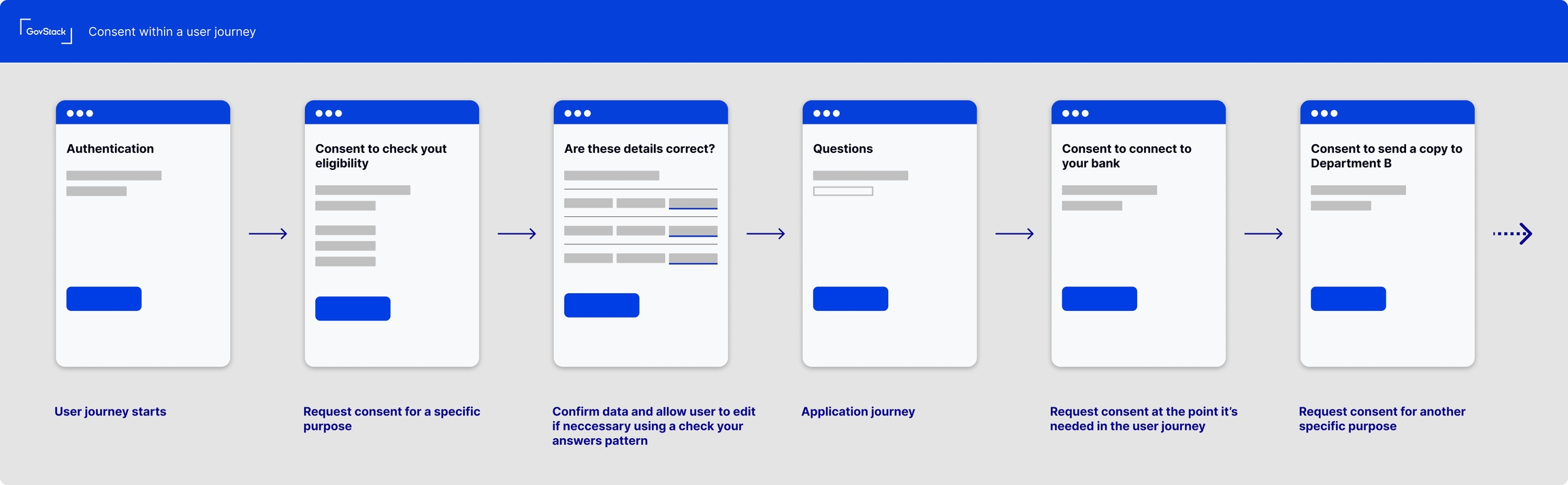 You may need to ask for consent at the start of a service or throughout the user journey.