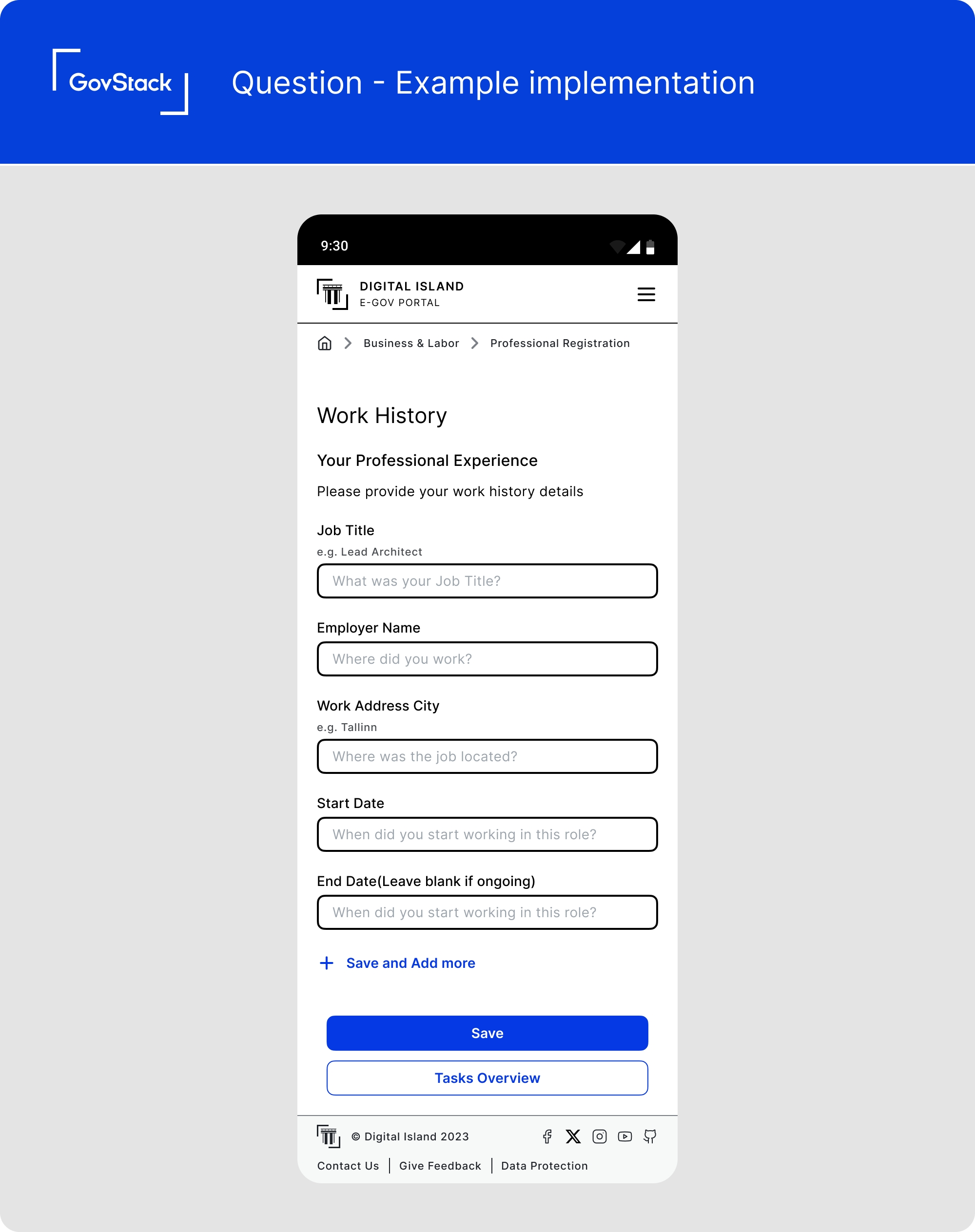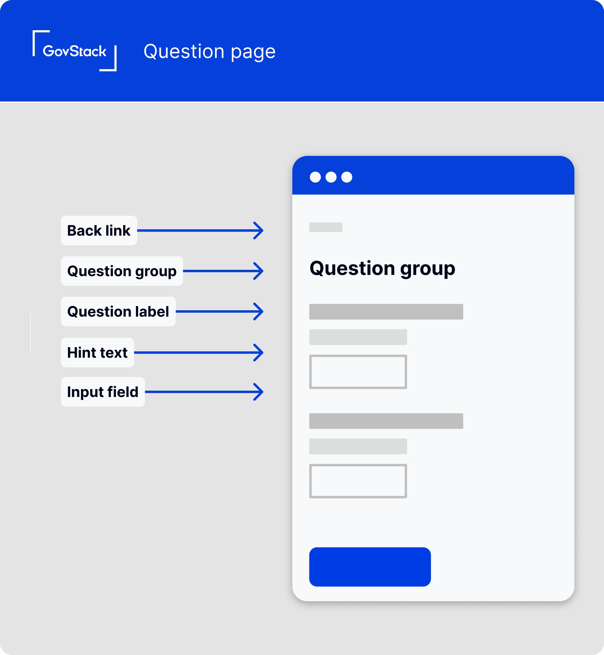 This can be one question per page or group-related questions together, for example, contact details. Grouping related questions together can help users understand the context of each question and make it easier to provide accurate responses. When you group related questions together, you will have a ‘question heading’ that will help people understand what is needed for the set of questions.