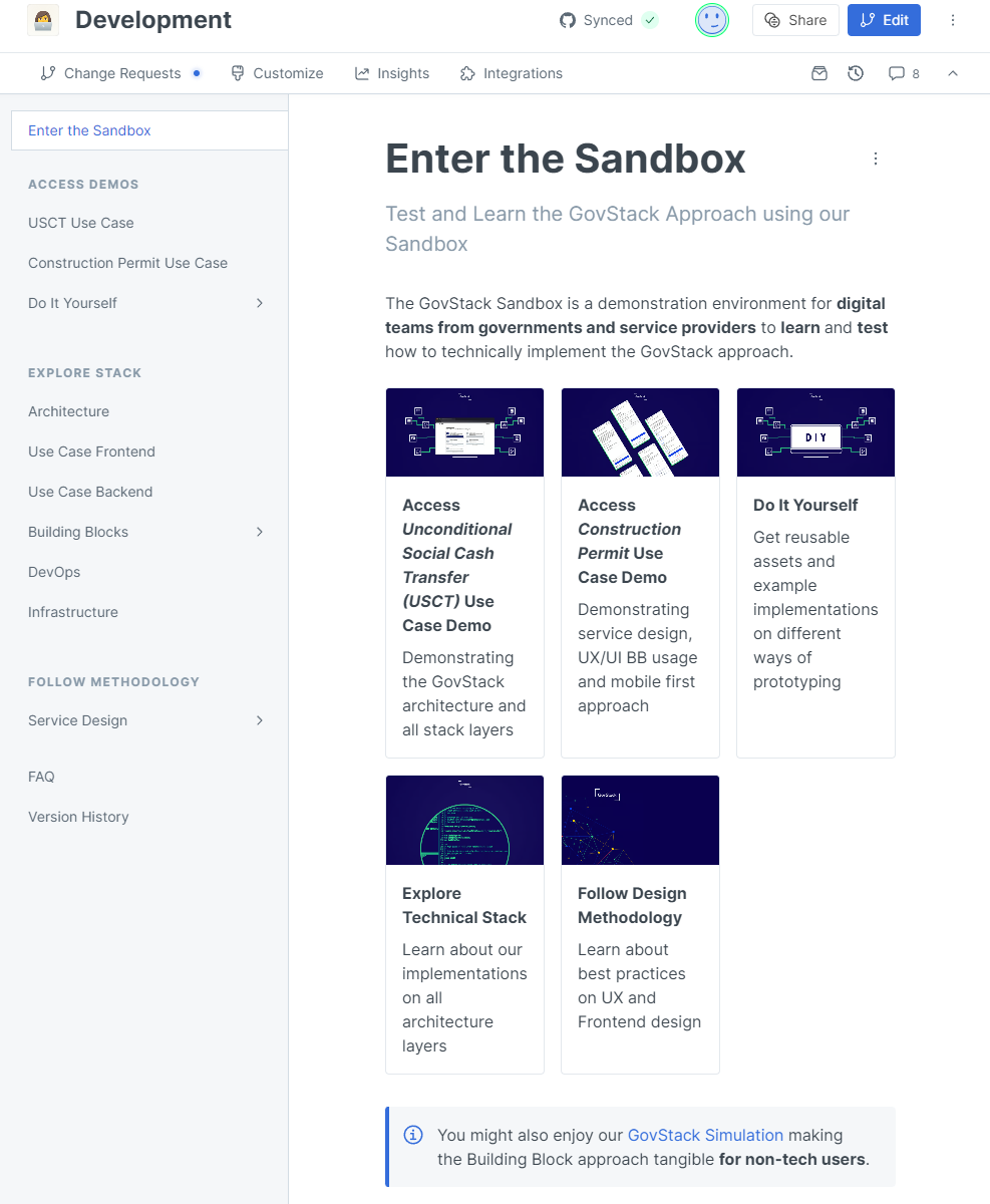 GovStack provides a sandbox that allows its users to see the UX/UI guidelines and Building blocks in action.