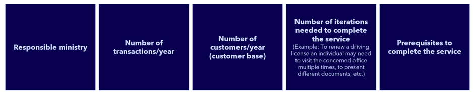 Classify services based on their digital maturity. The level of maturity of services facilitates calculating the financial and technical effort that will be required to digitize/digitalize a citizen-centric government service. An example of classification is as follows: