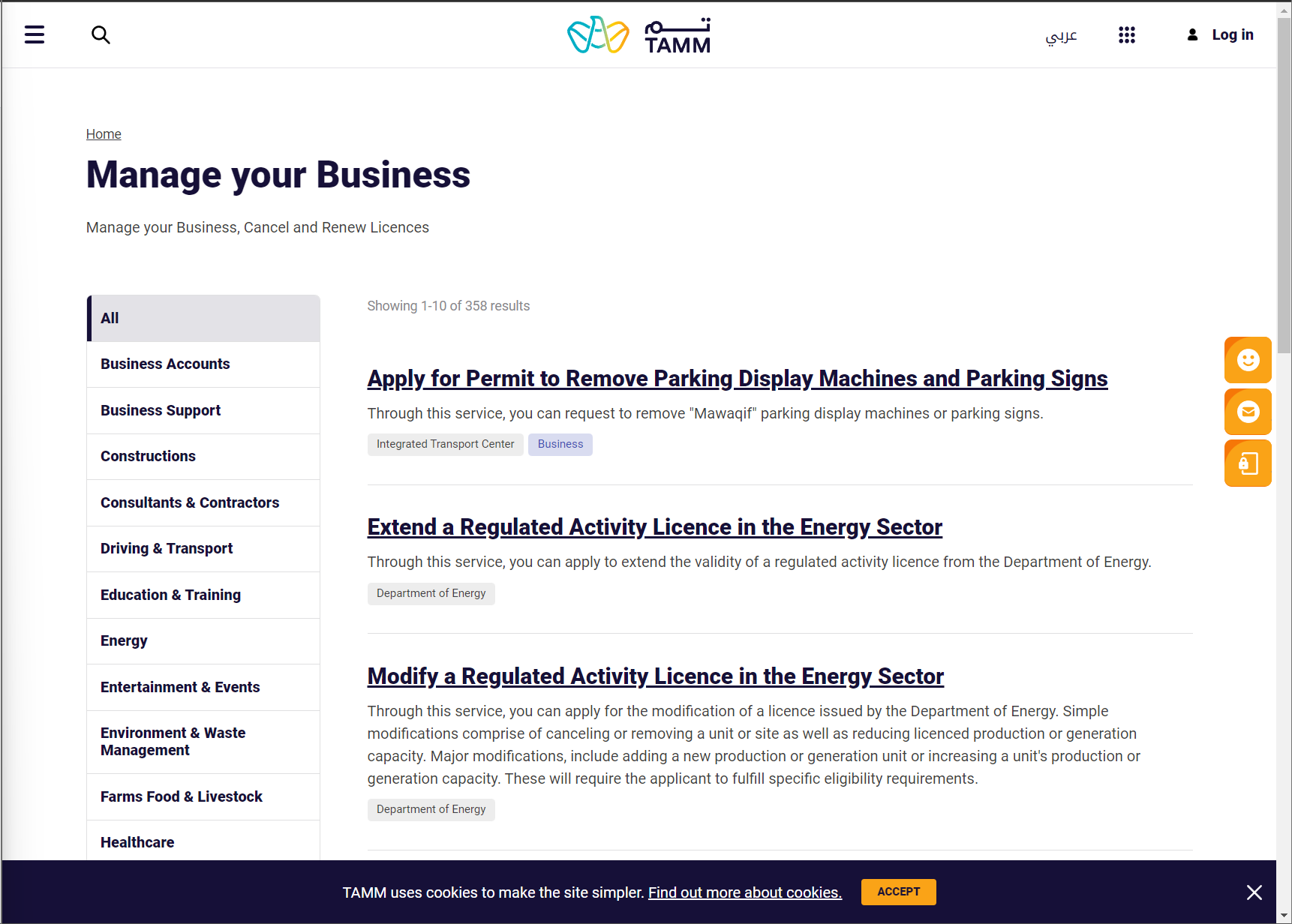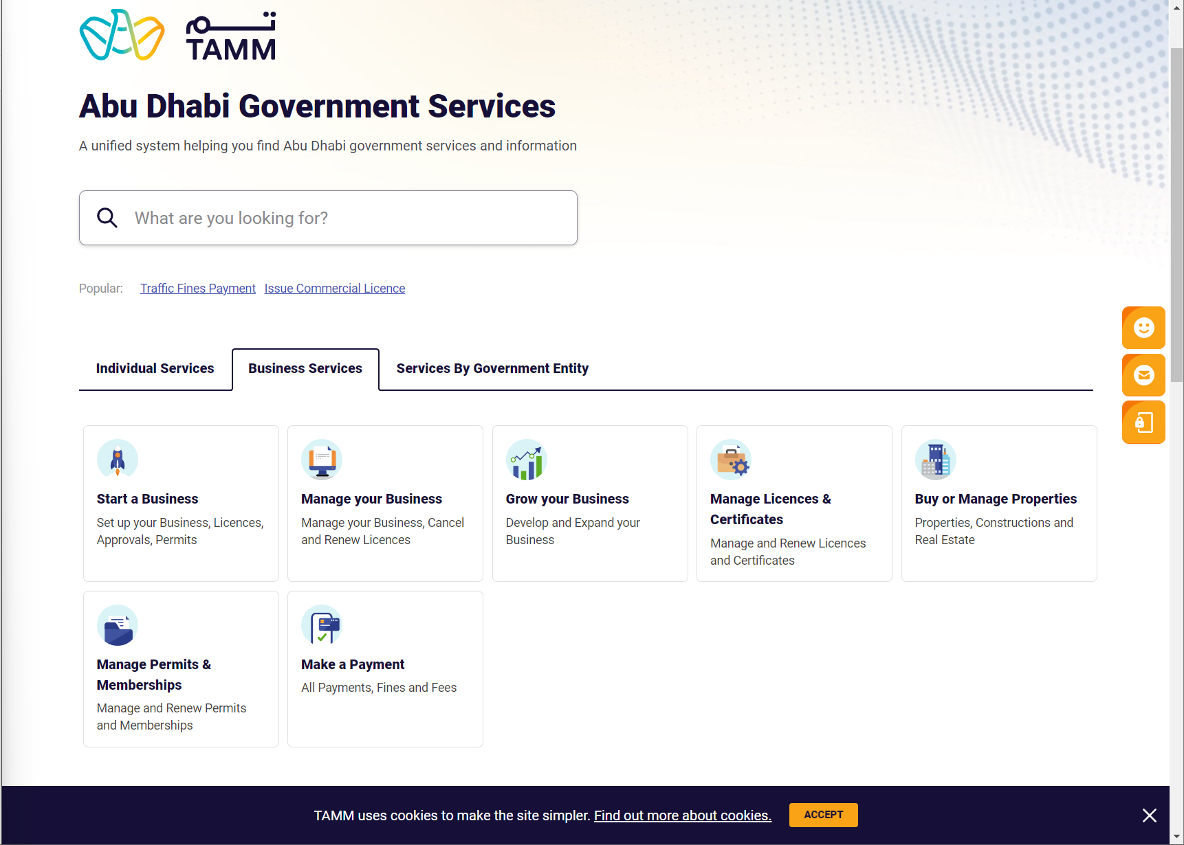 The following image shows the front end of the one-stop-shop for services offered by Abu Dhabi government