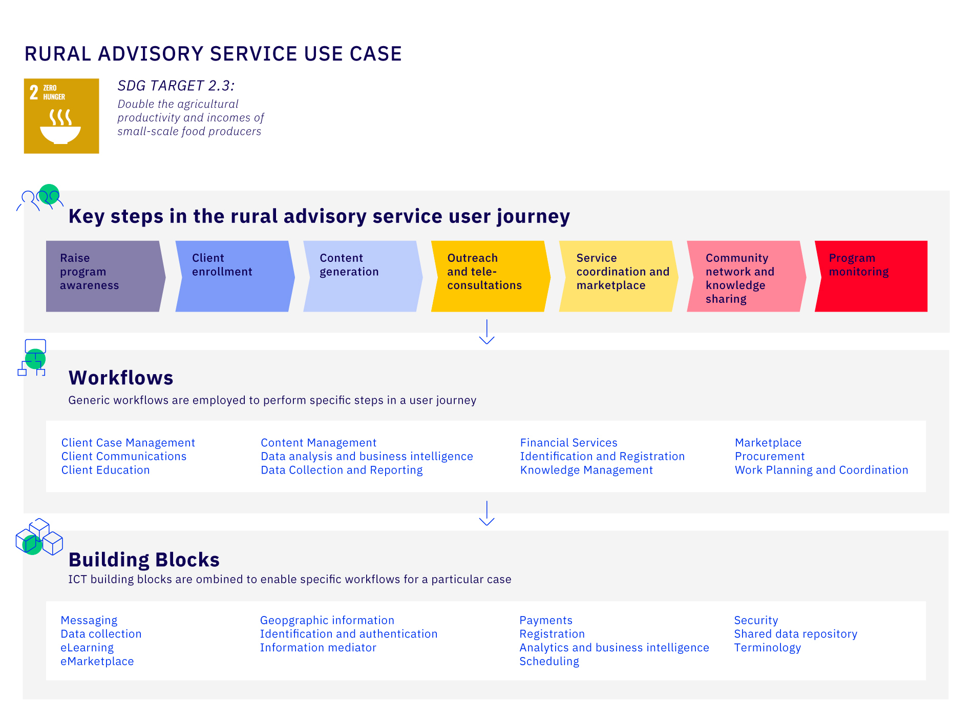 The example below illustrates the business processes and supporting technologies for an illustrative **Rural Advisory Service Use Case.**