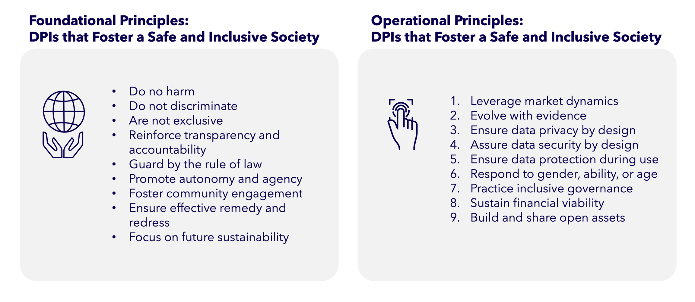 Together, these principles ensure that DPI supports a safe, inclusive, and rights-preserving digital society.