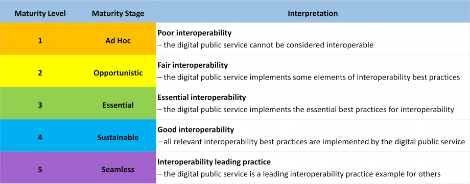 * **Ad hoc** *(level 1)*: Poor interoperability – the digital public service cannot be considered interoperable