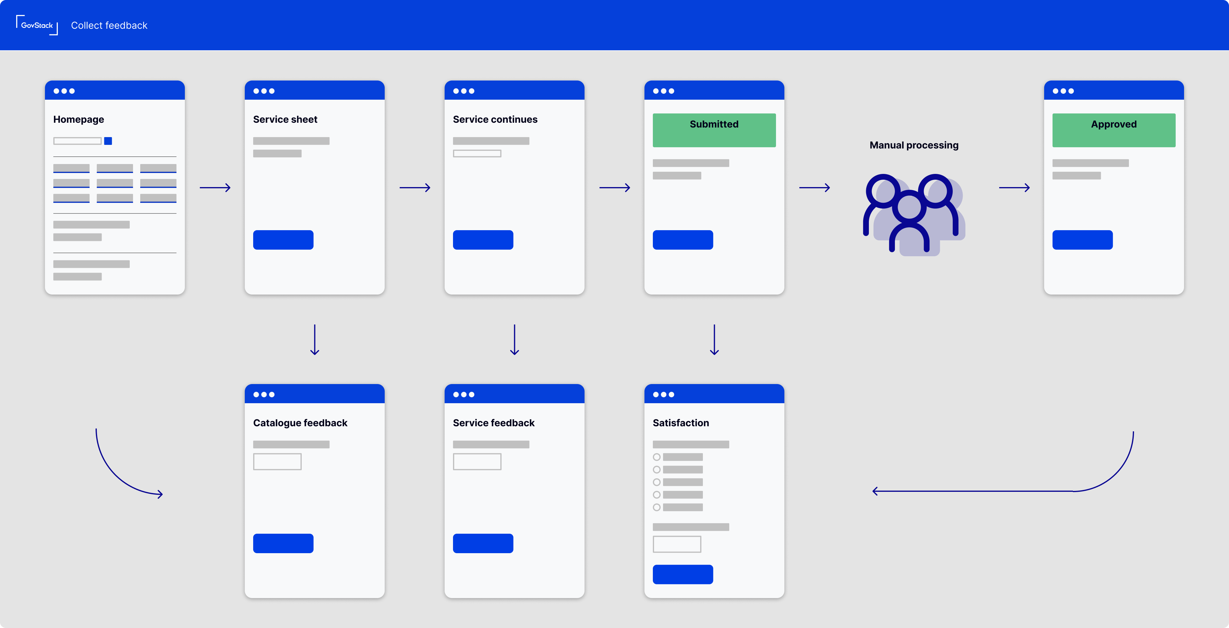 <figure><img src="https://content.gitbook.com/content/YOceCec3BCixhUmzyxTR/blobs/qanovPFwSZOrsujLryFO/Collect%20feedback.png" alt=""><figcaption><p>A flow diagram showing the points at which you might collect feedback about your catalogue or service</p></figcaption></figure>