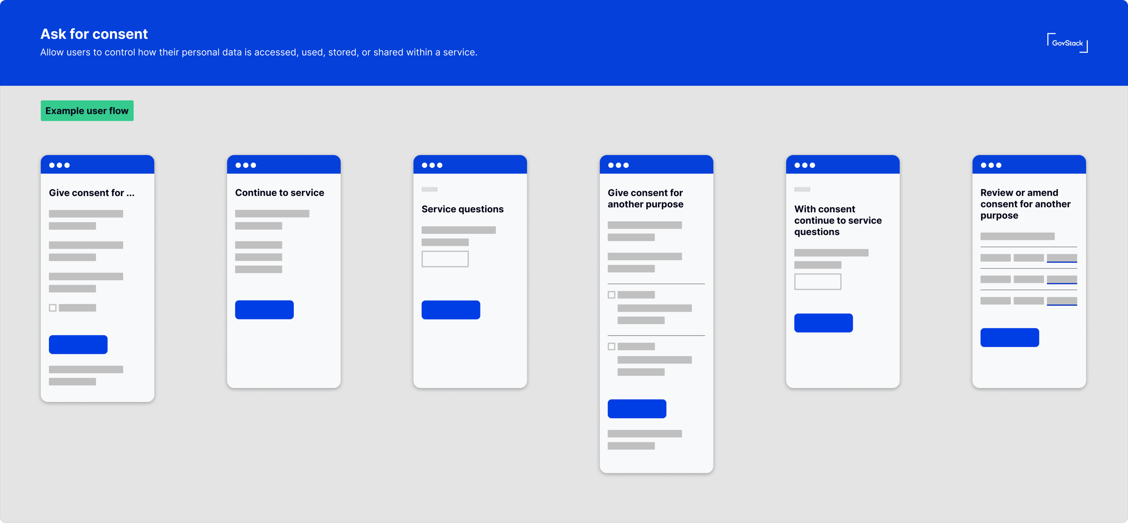 Consent may be requested at the start of the journey or at specific points where a new purpose is introduced and user approval is required to proceed.