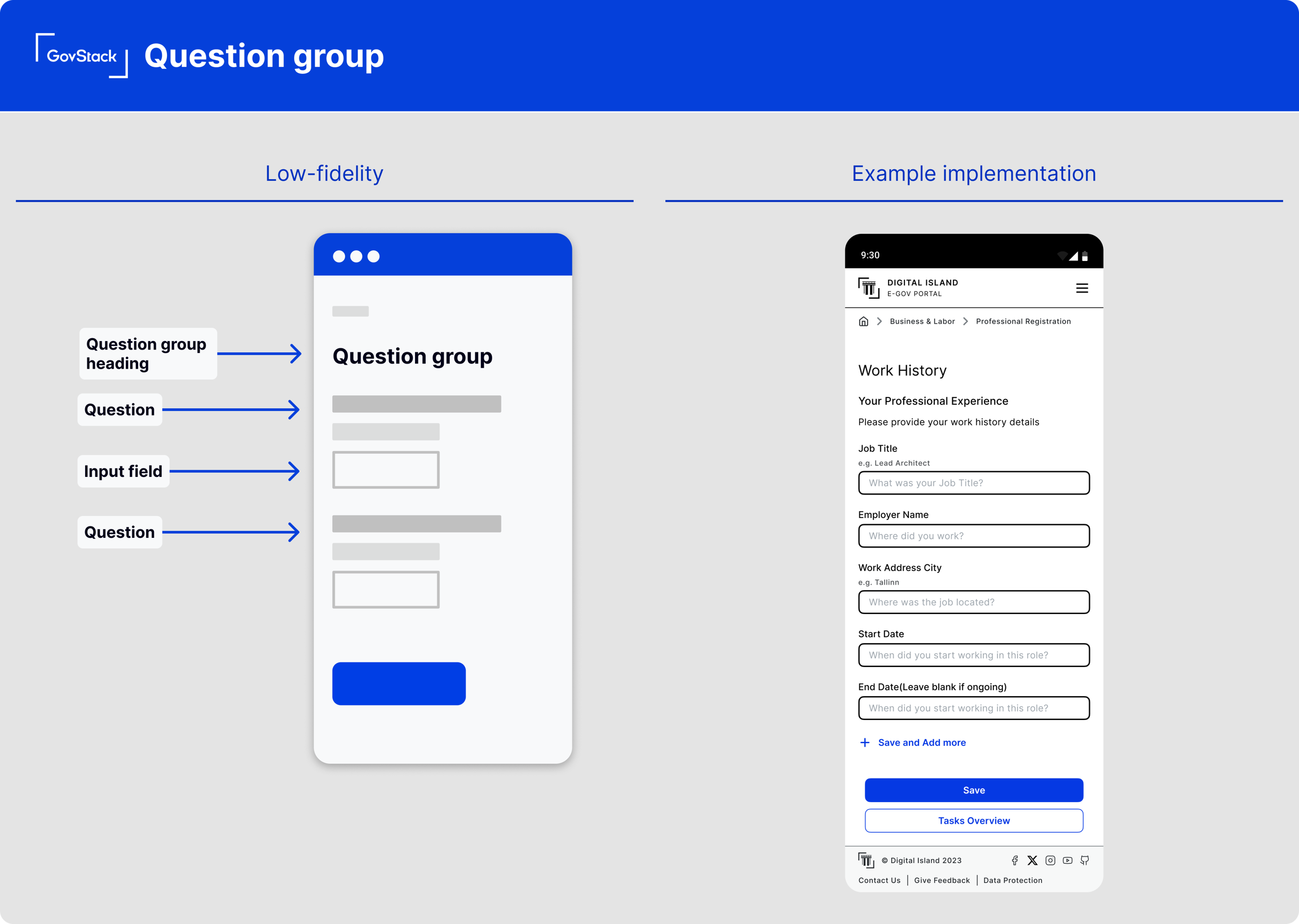 Use a question group to collect related information together, such as contact details. Grouping helps users understand context and provide accurate answers.