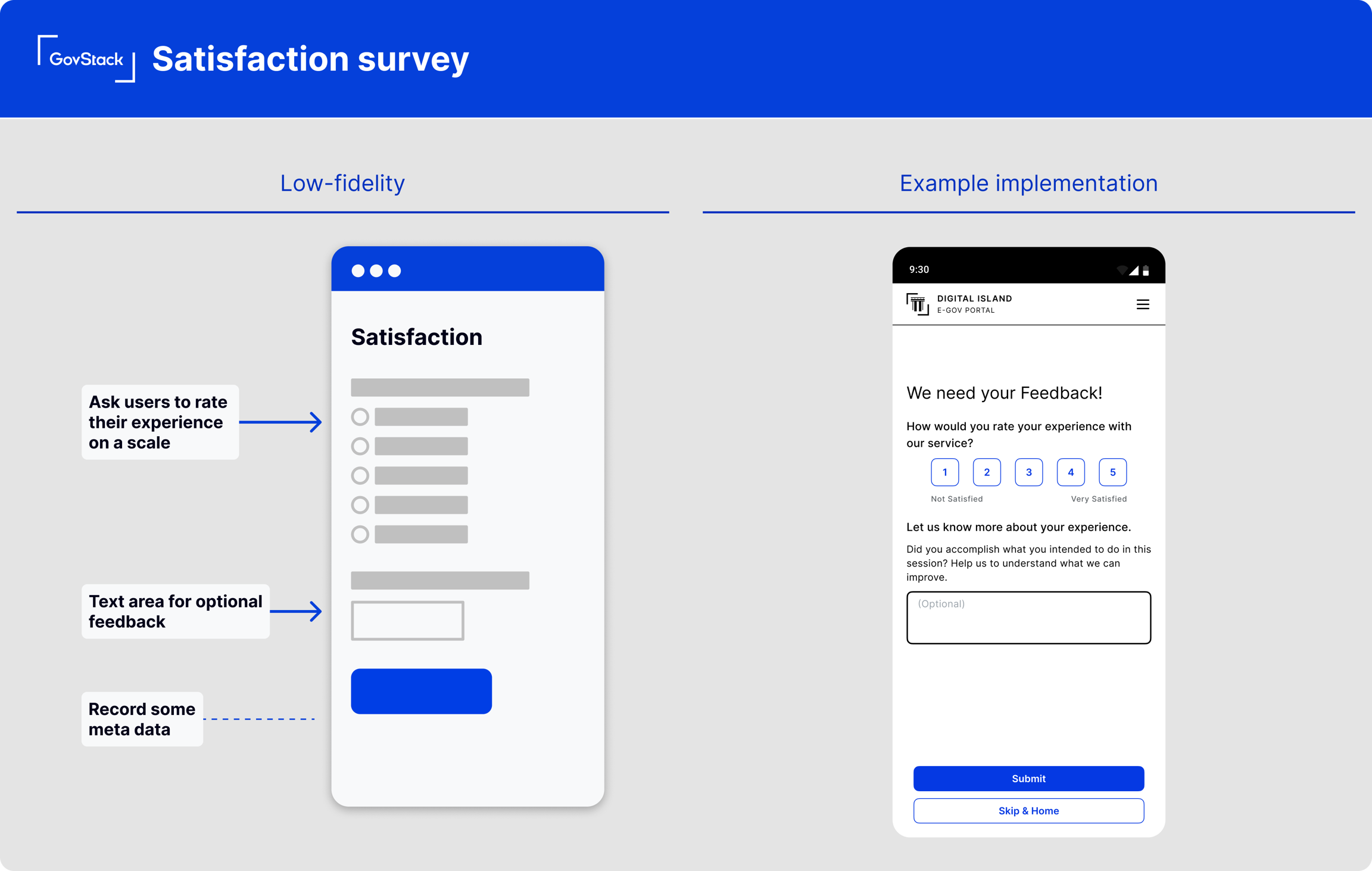 Collect feedback while users are completing a service, without interrupting or distracting user’s progress.