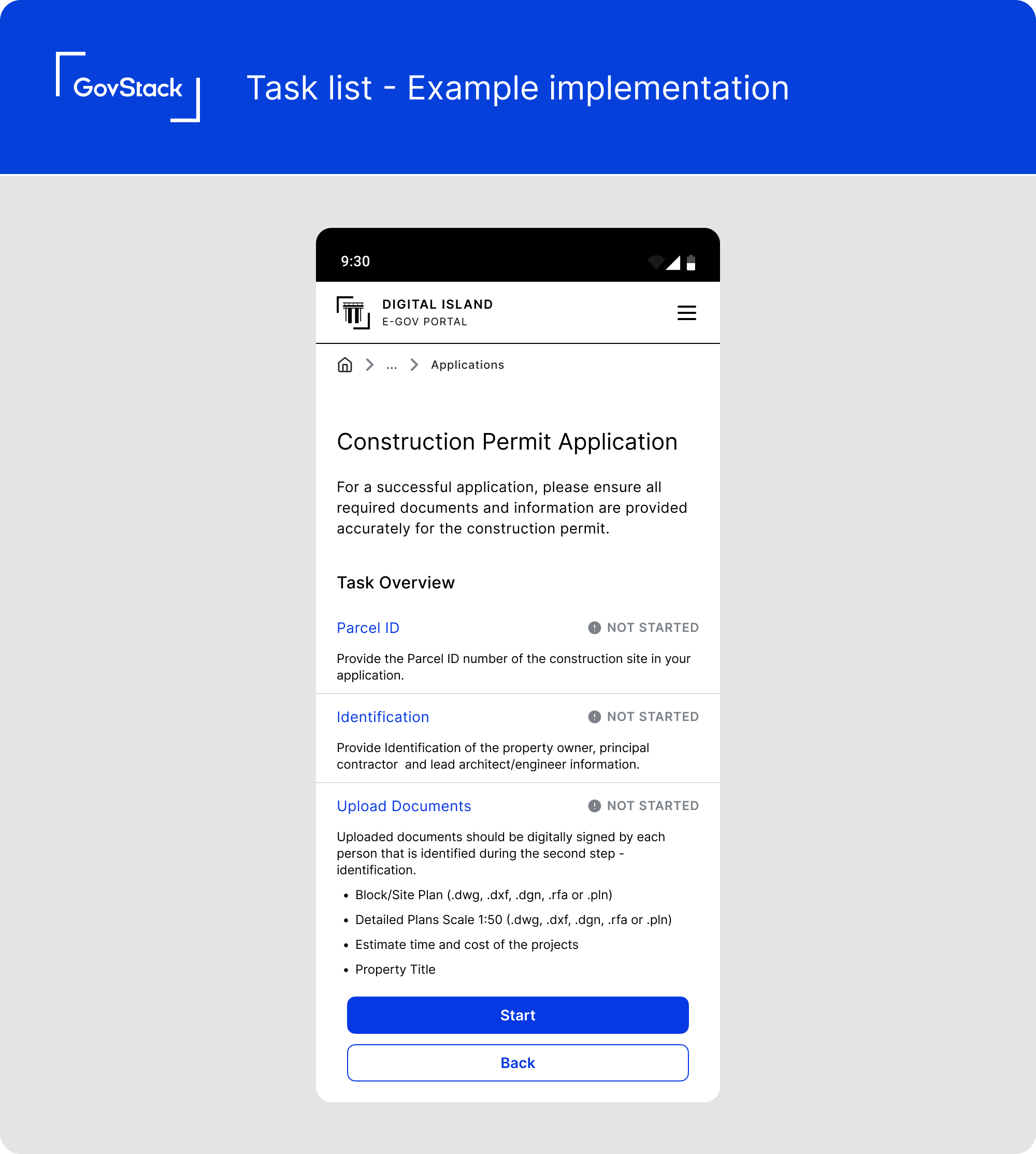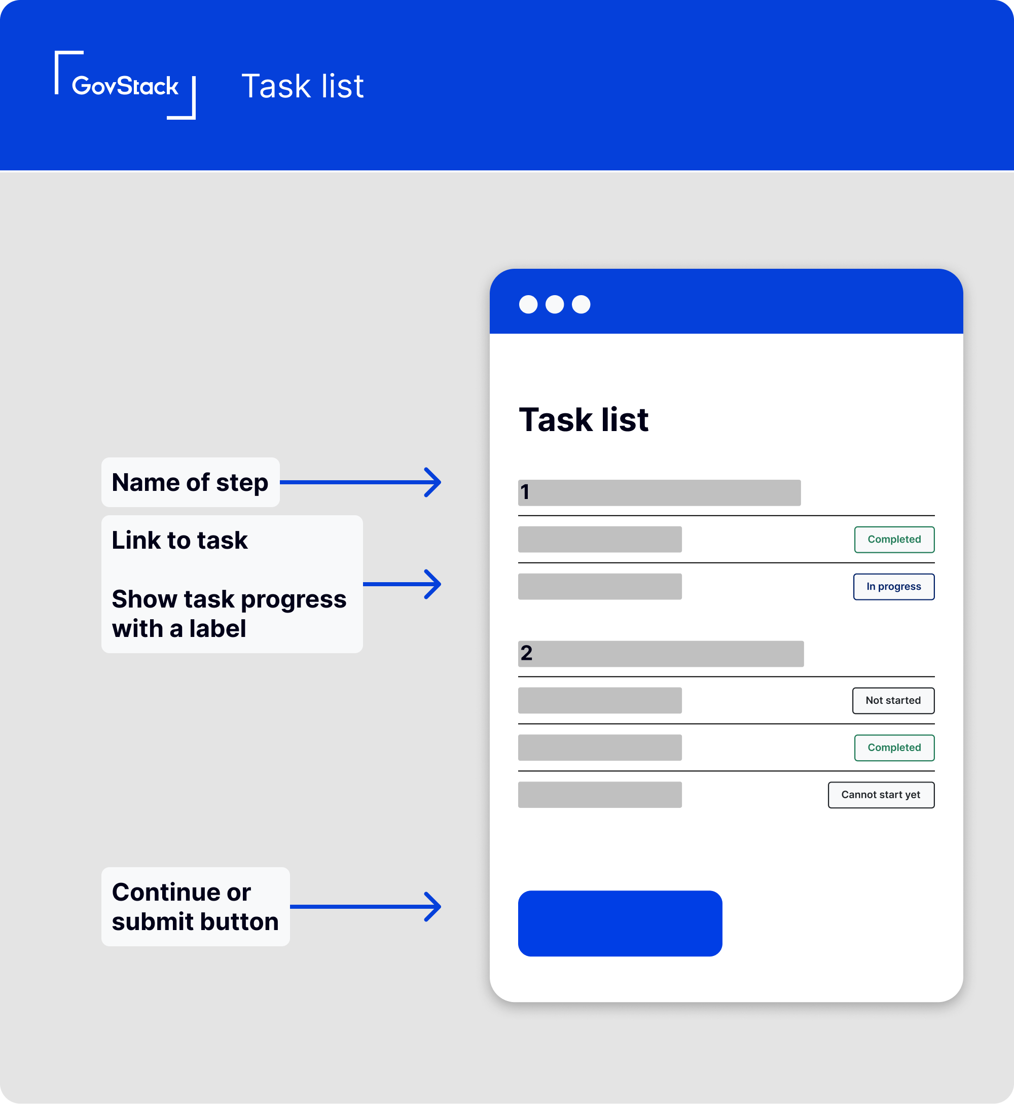 In long complex forms and transactions that involve multiple steps and pages, help users understand the list of tasks involved and their progress as they move from one question to the next.
