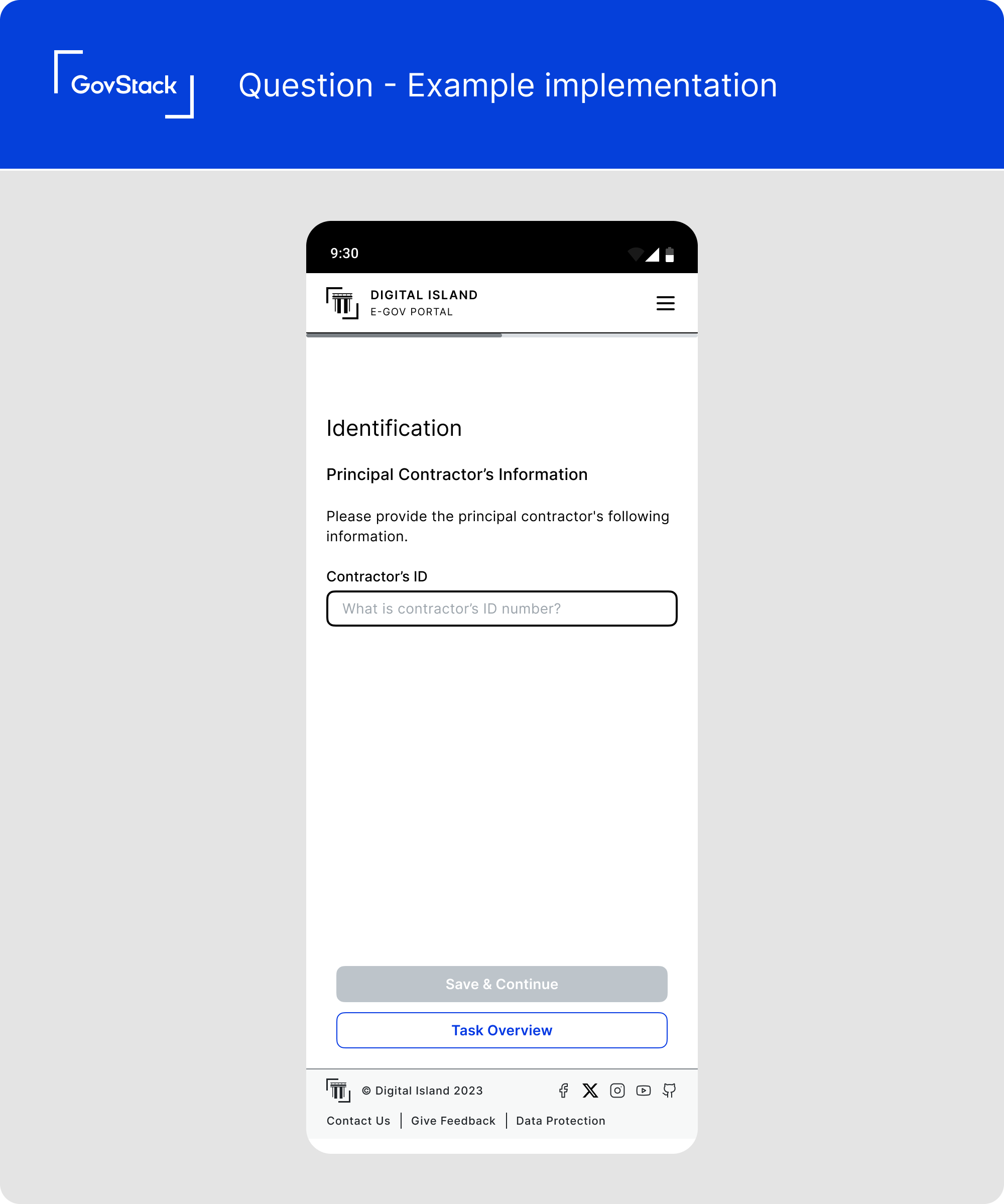 This can be one question per page or group-related questions together, for example, contact details. Grouping related questions together can help users understand the context of each question and make it easier to provide accurate responses. When you group related questions together, you will have a ‘question heading’ that will help people understand what is needed for the set of questions.