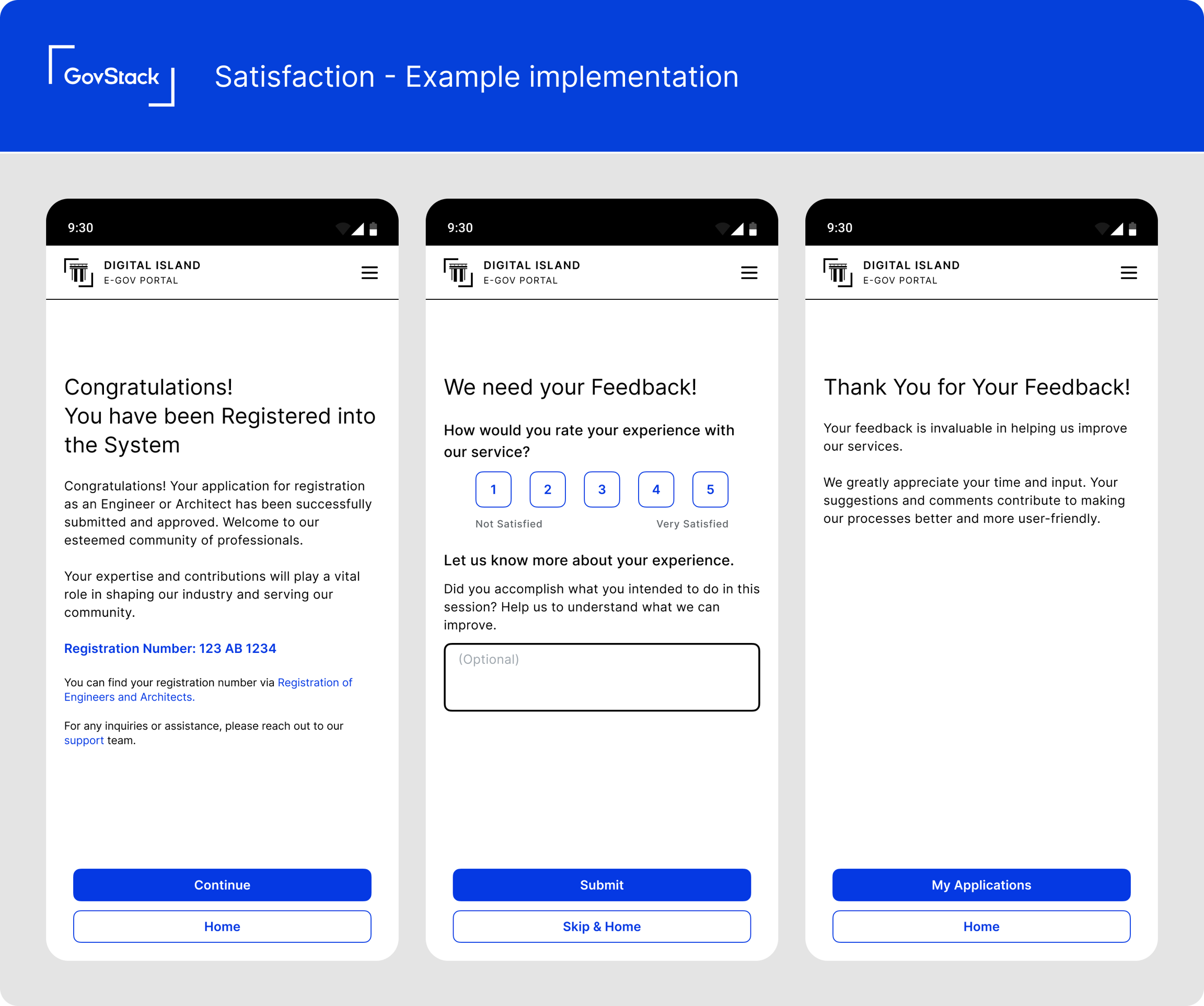 Use this pattern at the end of a user journey to collect valuable feedback about user experiences. Be aware that user satisfaction is biased to users that reach an end-point of a service.