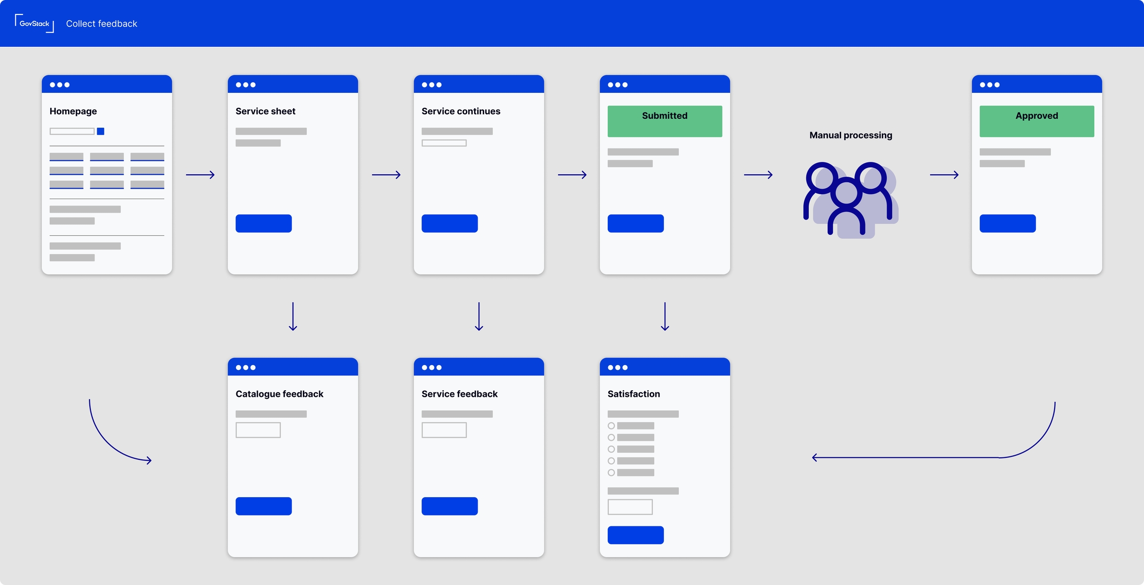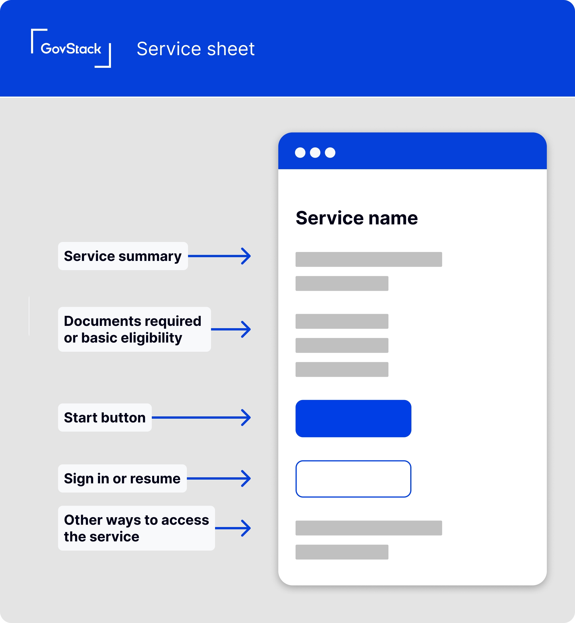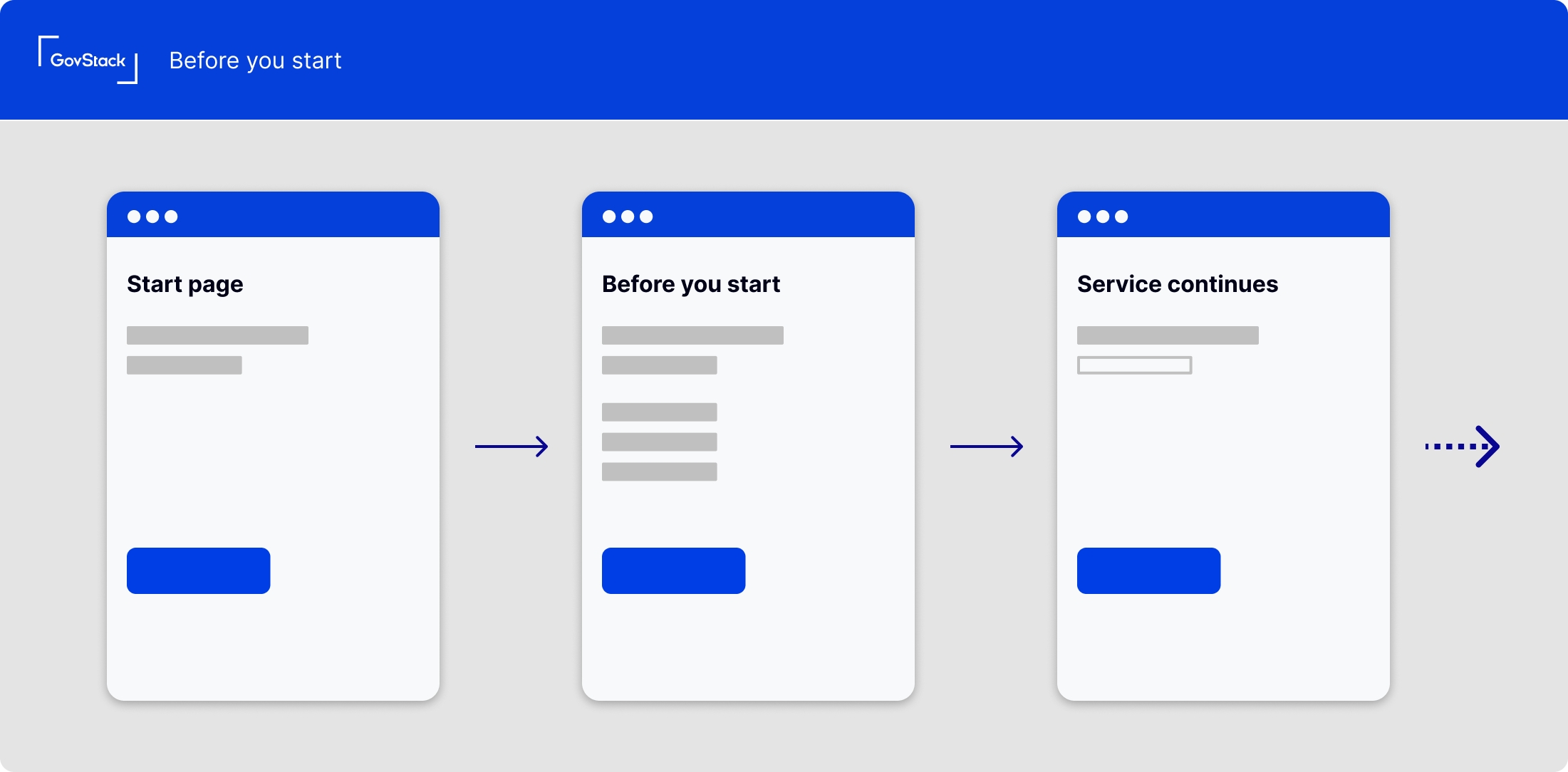 We chose to define high-level service patterns rather than anything more specific like a design system or user interface components, this is to maintain flexibility to work around each organization's needs and existing design assets and front-end frameworks.