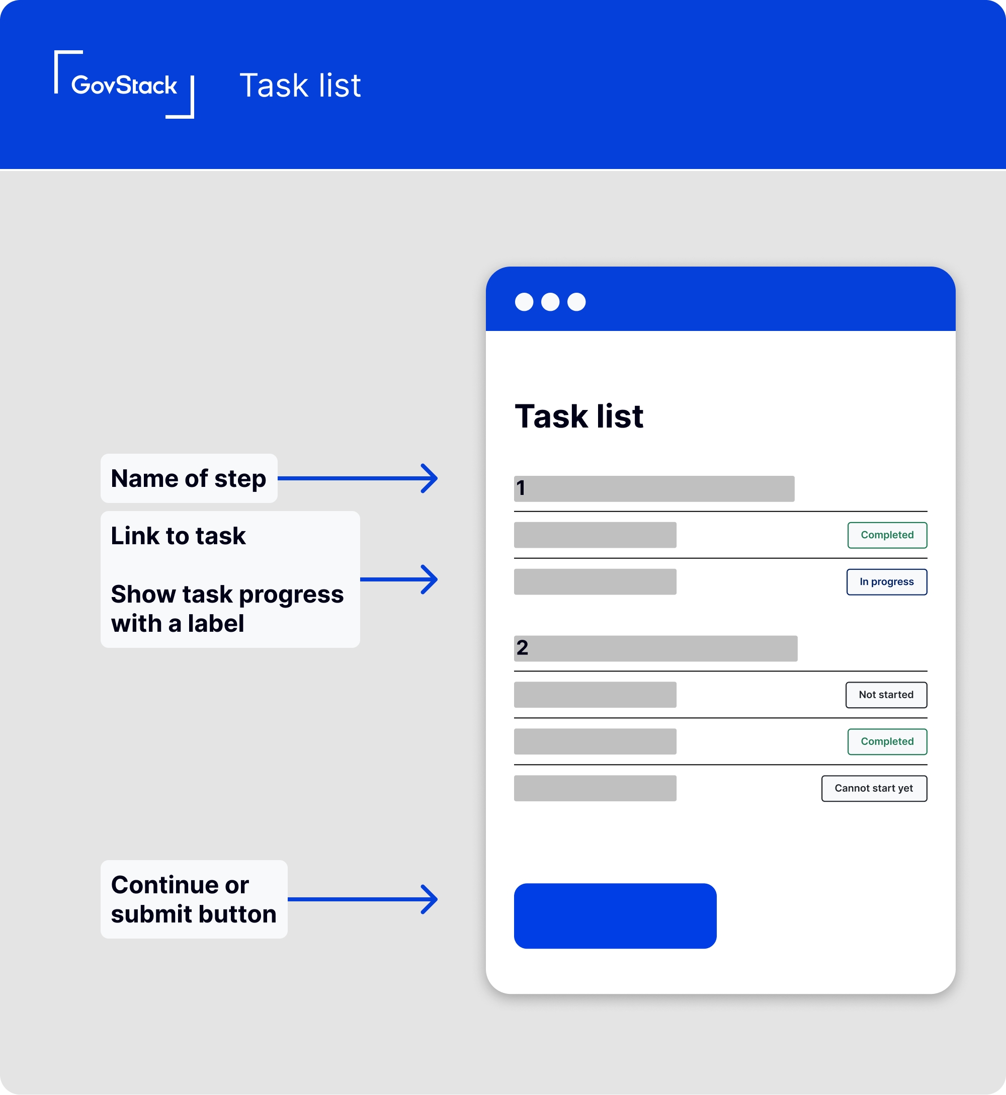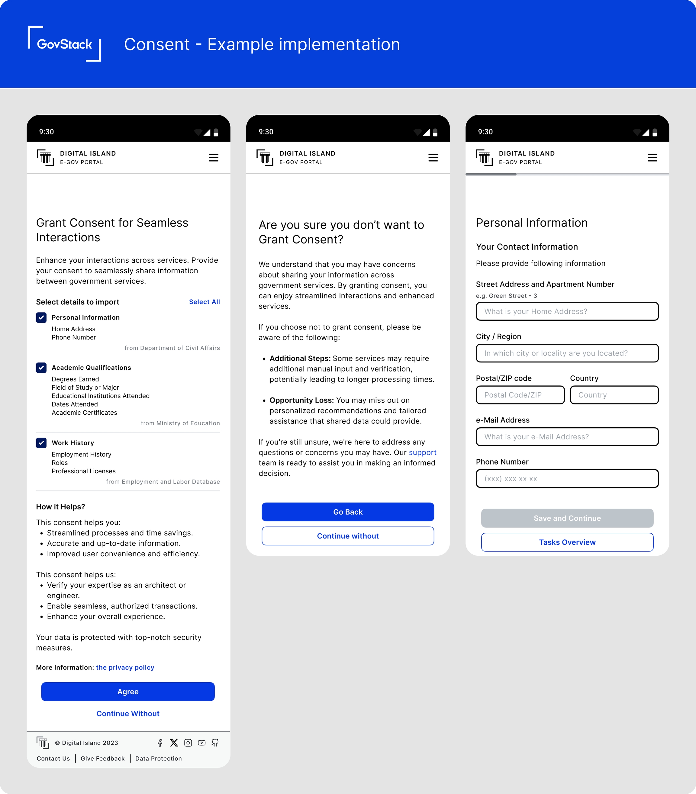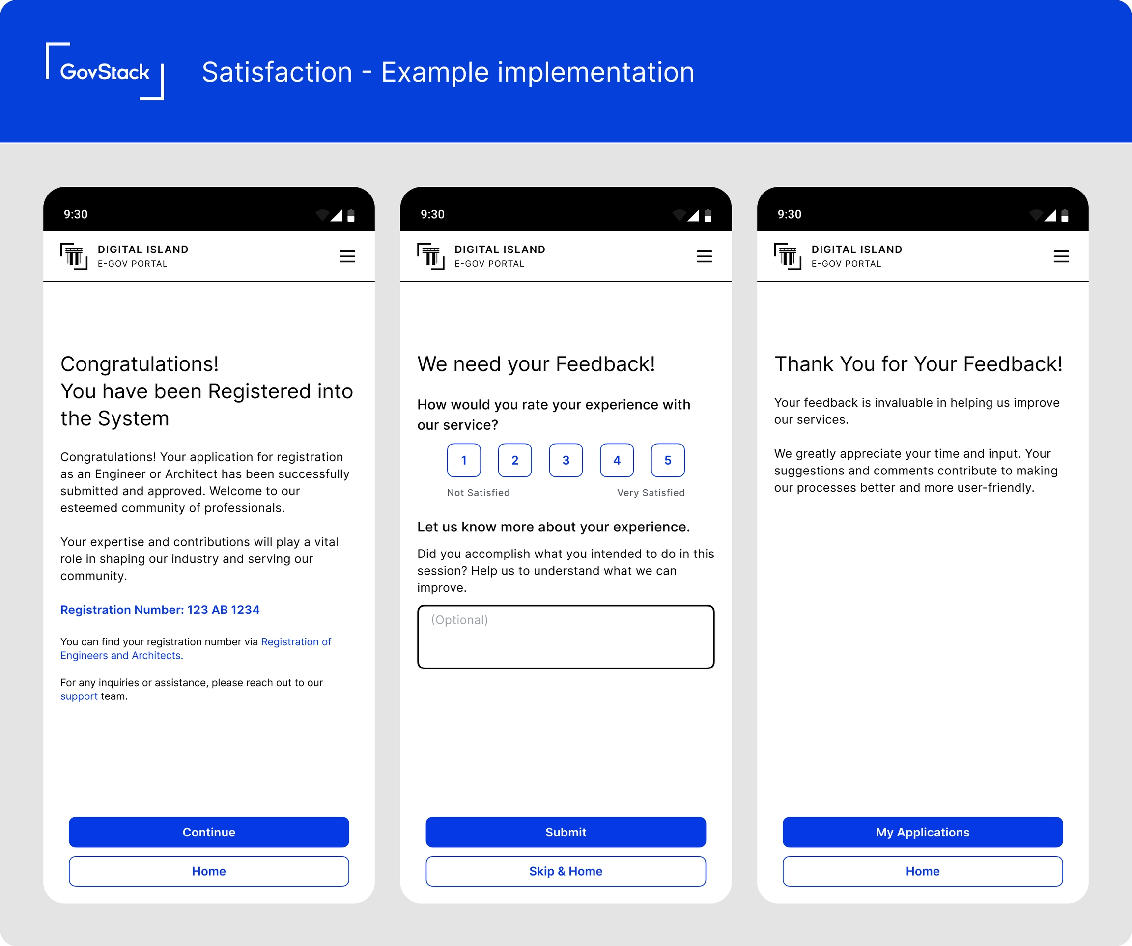 We chose to define high-level service patterns rather than anything more specific like a design system or user interface components, this is to maintain flexibility to work around each organization's needs and existing design assets and front-end frameworks.